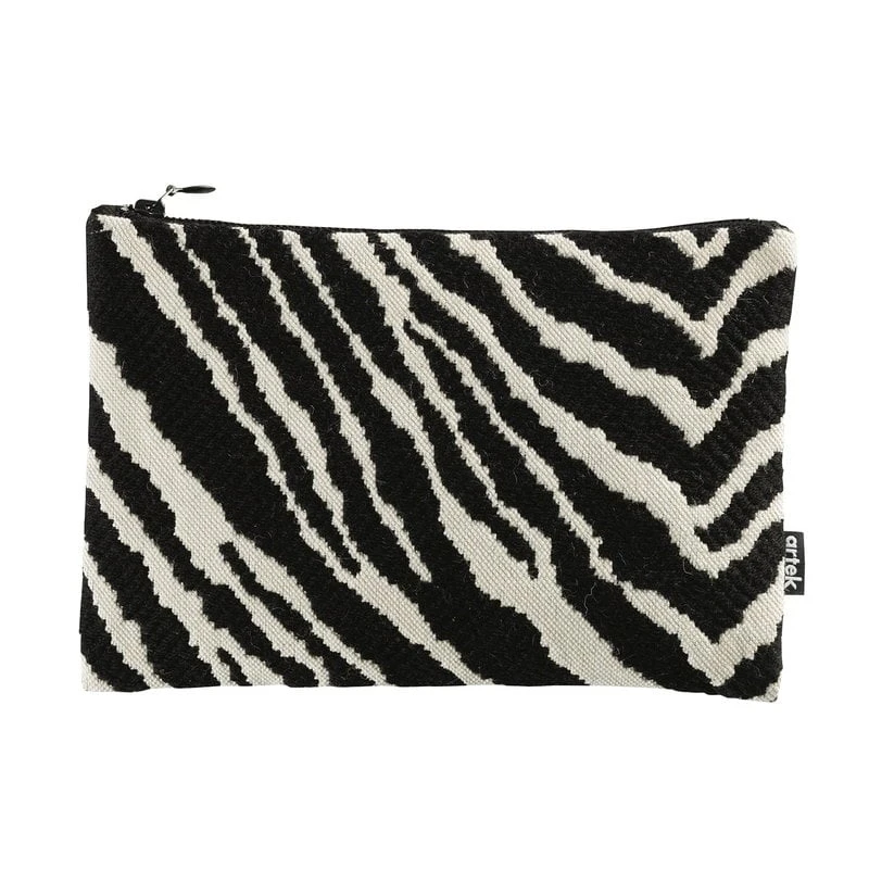 The Zebra pouch is made of a monochrome classic fabric that Aino Aalto found on her travels to Europe and is now woven in Germany exclusively for Artek. The small versatile pouch comes with a zipper and can be used to hold anything from make-up to small personal items.